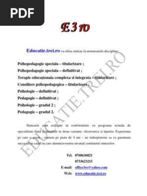 2687/27.11.2007 descarcă citeşte mai mult. Definitivat 2021 >> rapoarte >>. Candida ții care particip ă la concursul pentru ocuparea posturilor/catedrelor vacante din înv ăţământul preuniversitar la disciplina psihopedagogie special ă pot ocupa urm ătoarele 37 full pdfs related to this paper. Temele marcate cu asterix (*) nu sunt cerute la definitivat.